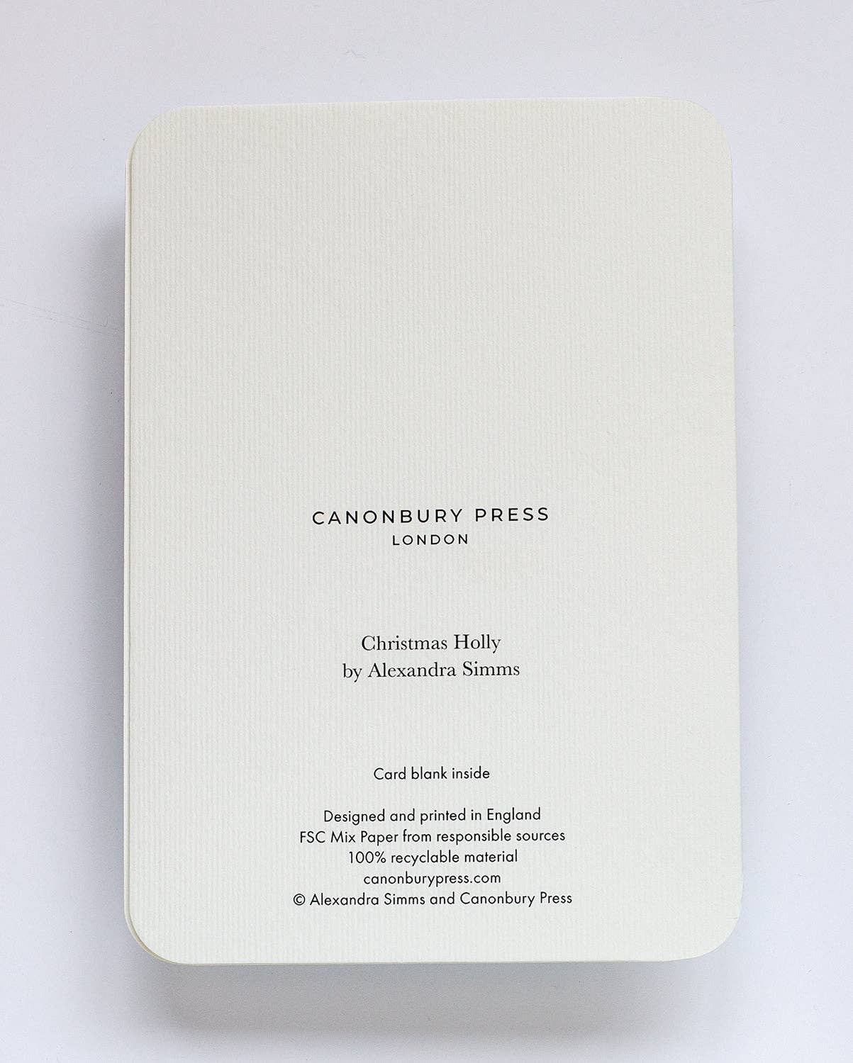 A graceful greeting card featuring classic Christmas greenery sprigs of holly, mistletoe and winter berries. Luxury A6 greeting card, printed in the U.K on Italian-milled paper. Hand finished with rounded corners and supplied with a matching envelope. Blank inside for your own message.